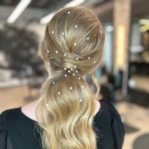 Bridal hair services are thoughtfully designed to support you from consultation to wedding day. Together, we create a style that complements your vision, timeline, and overall look, ensuring your hair feels polished, secure, and effortlessly beautiful.